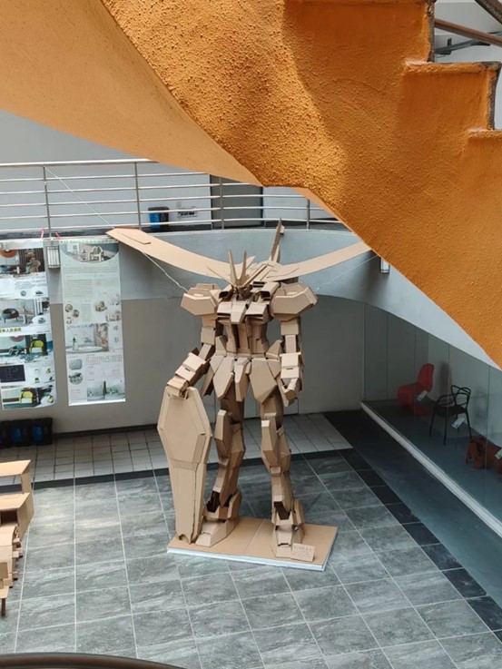 这位“纸糊的高达”是来自23级家具艺术设计2班 《家具造型设计(DIY)》的课程作品! 作品正在设计楼3楼中庭展出 作品小组成员:卓岳莹、林嘉昱、王焕昇、刘祖仁、刘俊烽、林国韬、李鸿图、黎俊 指导教师:谢穗坚 来合影呀📷
