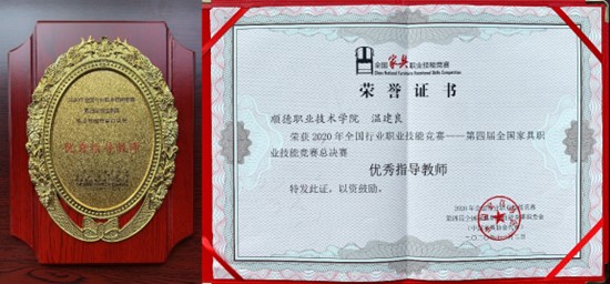 温建良老师获得本次全国家具职业技能竞赛的
