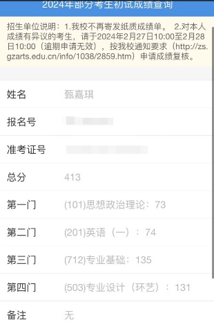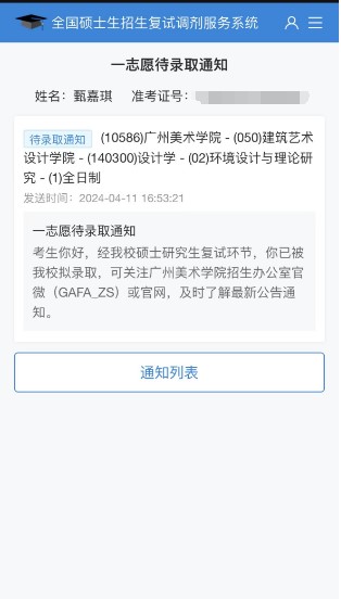 本科到硕士的成长之路,良好的学习氛围、丰富的教学资源、优秀的导师和同学伙伴、养成了良好的学习习惯,在内心深处深深种下了“攻读硕士研究生,继续深造”的种子,经过一年的努力,她相信努力一定不会辜负自己,初试成绩出来后,以专业第一名成功进入复试,最终被广州美术学院环境设计与理论研究专业待录取。