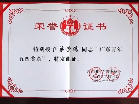 厉害!顺职院学生梁荣浩获“2020年广东大学生年度人物”称号
