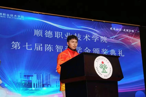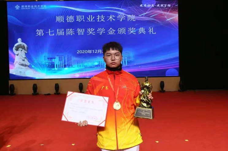 2020年12月,梁荣浩获得顺德职院第七届陈智奖学金特别奖