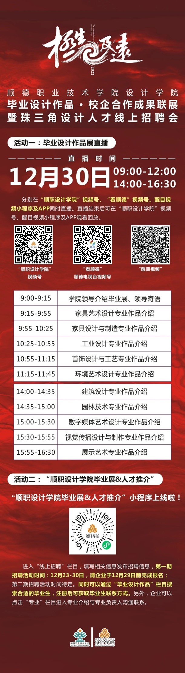 “极生及远” |2023届顺德职业技术学院设计学院毕业设计作品、校企合作成果联展暨珠三角设计人才供需见面会即将上线,敬请关注!