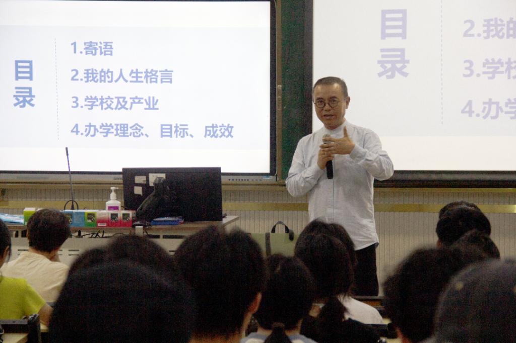 设计学院姚美康院长在会上致辞,他回顾了顺德职业技术大学的发展历程,强调了设计学院“国际视野、本土实践、民族情怀、世界水准”的办学特色和“育人为本、实用至上”的办学宗旨。他结合个人成长经历,鼓励同学们以“学习+奉献”为信念,在未来的学习生活中勇于探索、敢于创新,努力实现人生价值。