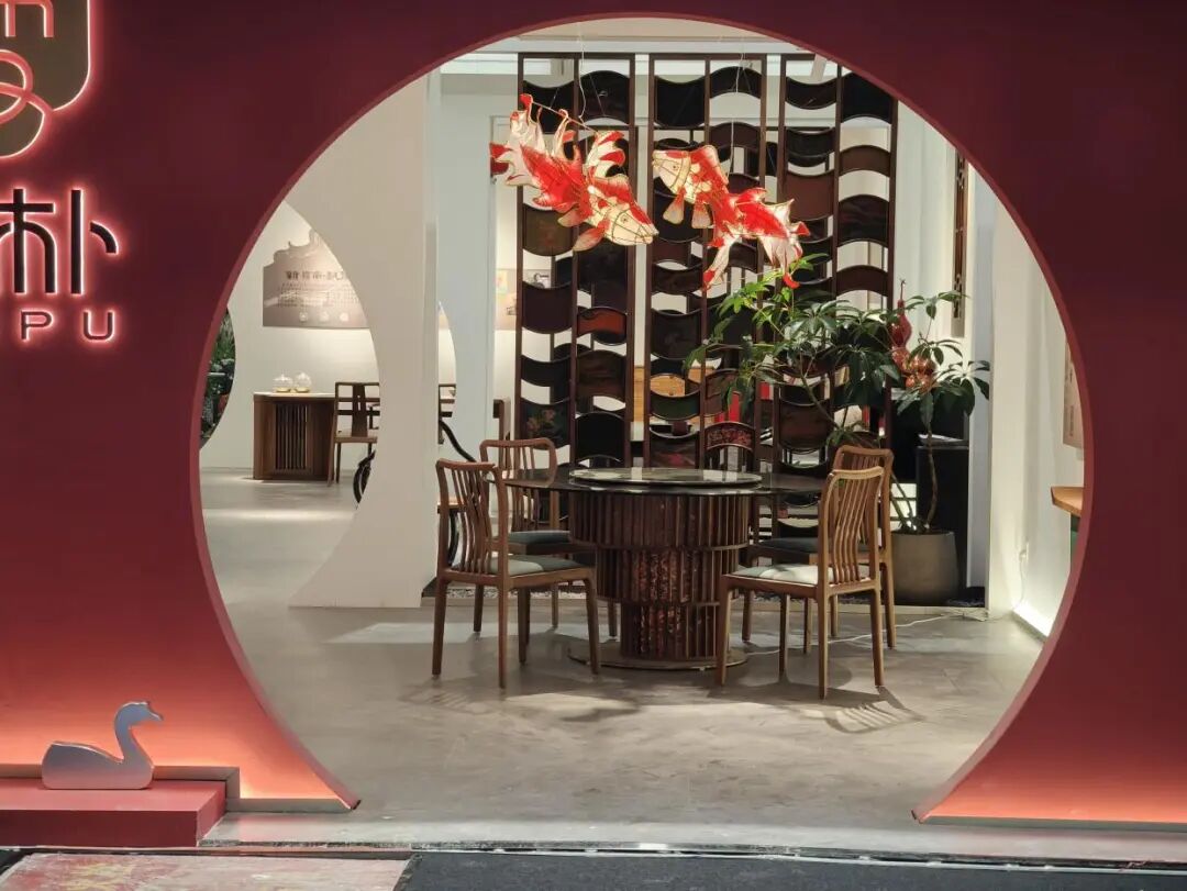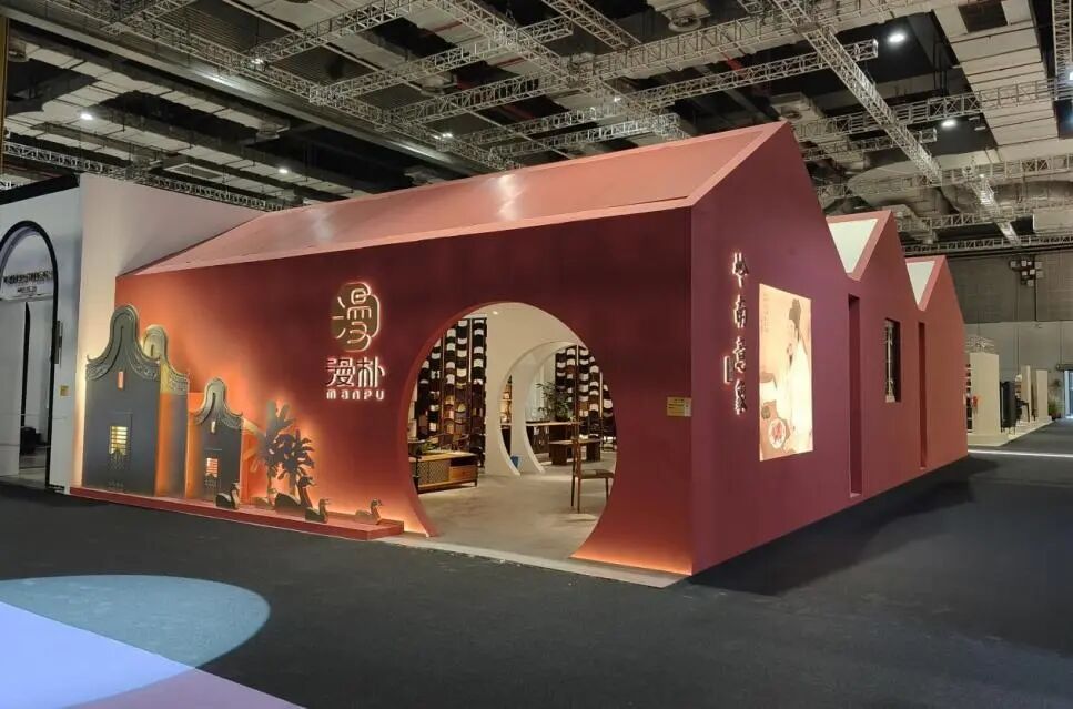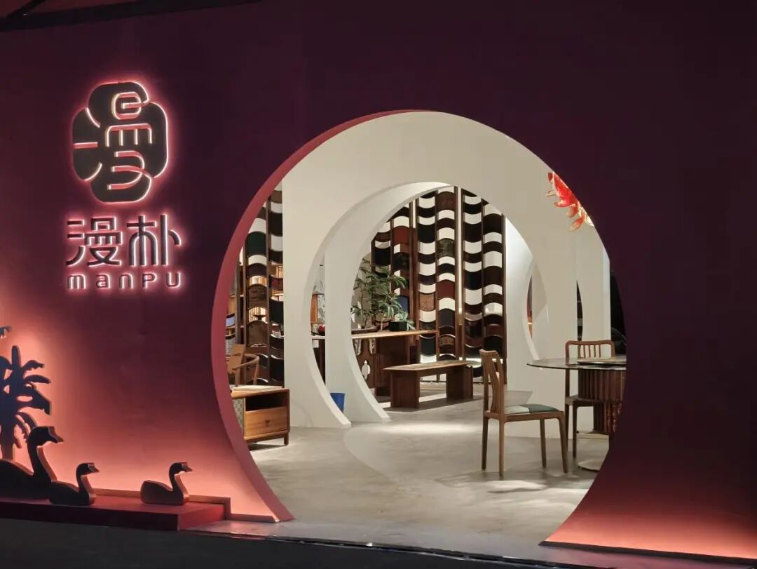 《岭南意向 —— 漫朴家具展厅》以 “岭南意向” 为核心设计概念,精准匹配漫朴家具 “新岭南家具杰出品牌” 的属性:借势电影《长安的荔枝》热度,结合岭南五行属火的特性,提取 “荔枝红”“荔枝白” 为核心颜色符号,既彰显浓郁岭南特色,又呼应上海摩登都市的国际背景,为观众带来兼具文化内涵与现代体验的观展感受。