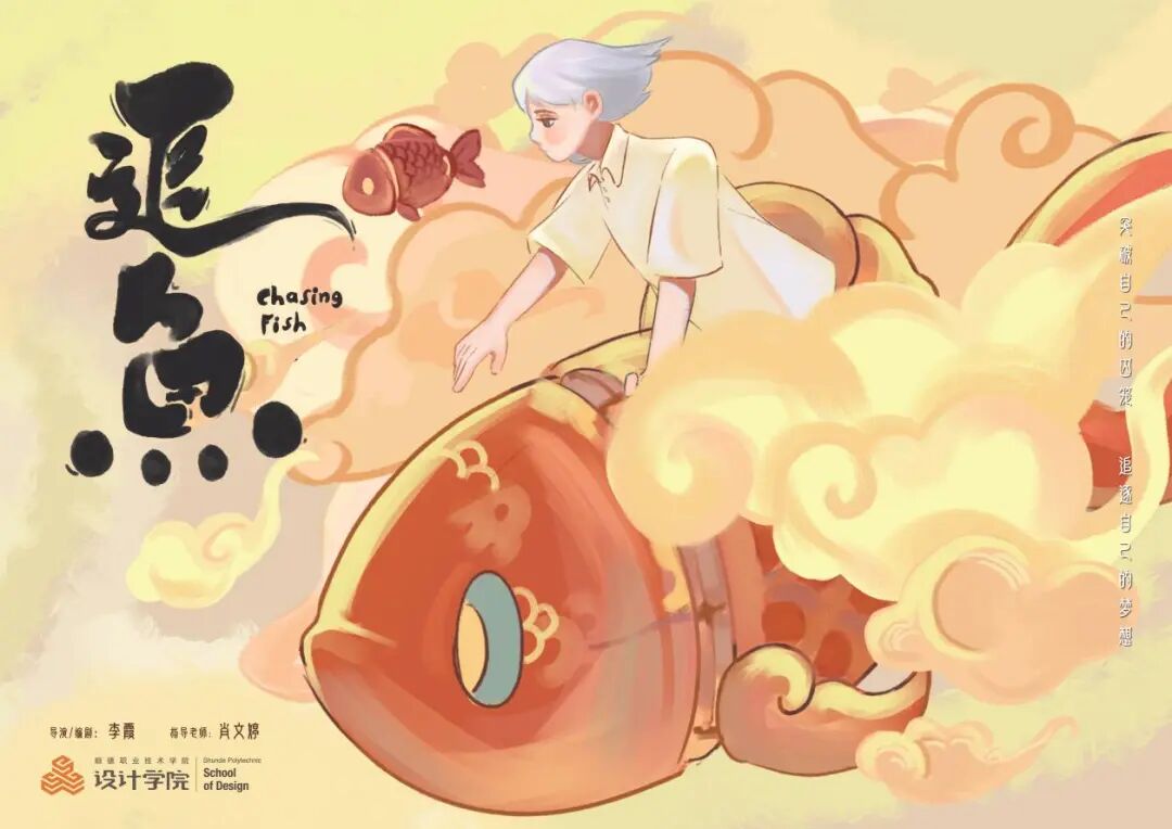 22级数媒专业李霞同学对大良鱼灯这项非遗技艺十分着迷。她的目标是希望用二维动画技术,让鱼灯“游”起来,讲述一个属于顺德的亲情故事。我鼓励她不仅要研究鱼灯的造型,更要理解其背后的民俗寓意与制作工艺。她多次拜访手艺人,拍摄了数百张细节图,最终在动画中完美再现了鱼灯竹篾的骨架与丝绸的通透质感,让传统手艺在数字世界里获得了灵动的新生。