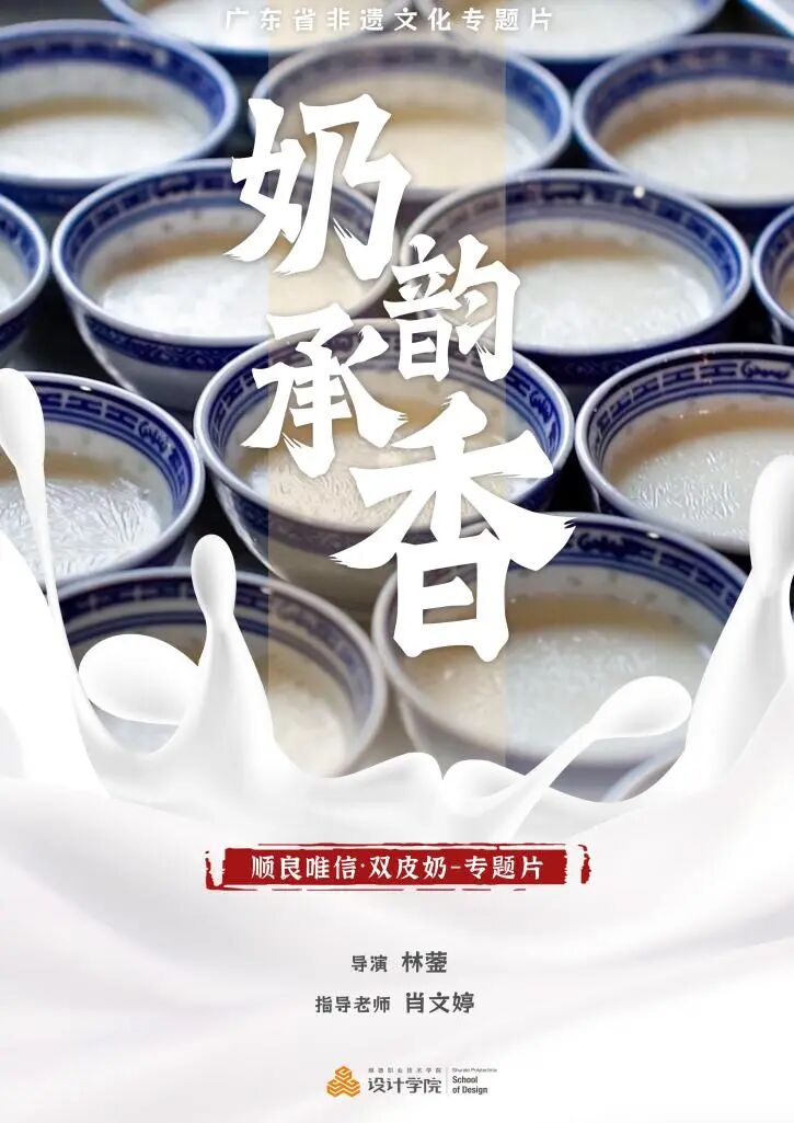 22级数媒专业林蓥同学则聚焦于“顺德双皮奶的制作技艺”。他不满足于文献梳理,决心采访非遗传承人,获取第一手资料。我协助他联系到品牌负责人,通过正式渠道进行接洽。当学生们面对面聆听传承人讲述“选奶、炖煮、结皮”的每一个细节与诀窍时,他所记录的已不仅是知识,更是一份沉甸甸的匠心。这份宝贵的访谈,成为了他纪录片创作的灵魂,也让他的作品超越了技术层面,具备了文化的深度与温度。