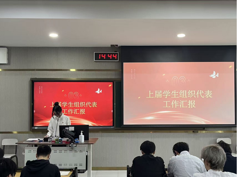 第二十三届代表许紫婷作工作汇报。她全面回顾了过去一年在思想引领、校园文化、志愿服务、学风建设等方面的工作成效,分享了宝贵经验与成长感悟,并对新一届委员寄予期望。