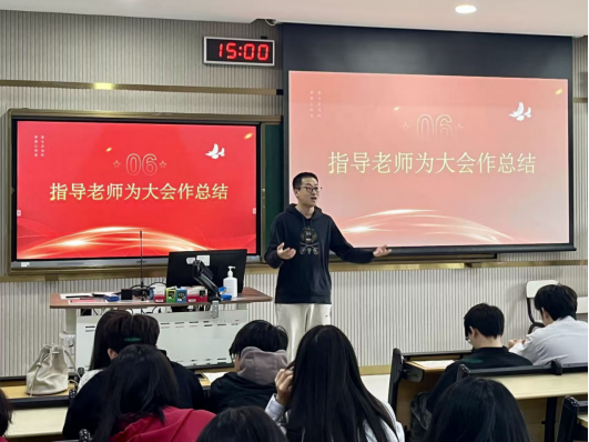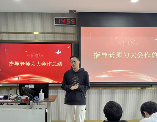指导老师郝洪涛为大会作总结。他肯定了上一届团委的工作成果,向新当选的委员表示祝贺,并提出三点希望:一是立足专业设计,打造创新化、差异化品牌,将设计学院的名声宣传出去;二是坚定理想信念,筑牢思想根基;三是聚焦中心工作,服务学院发展。他鼓励全体团学骨干以此次换届为新起点,锐意进取、真抓实干,为学院高质量发展贡献青春智慧与力量。
