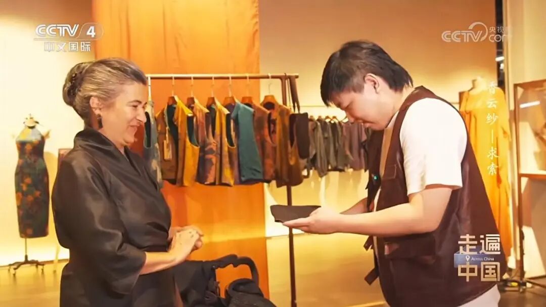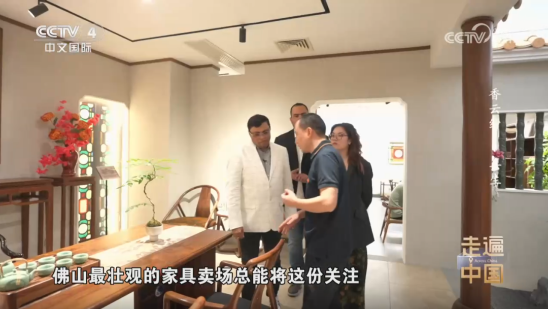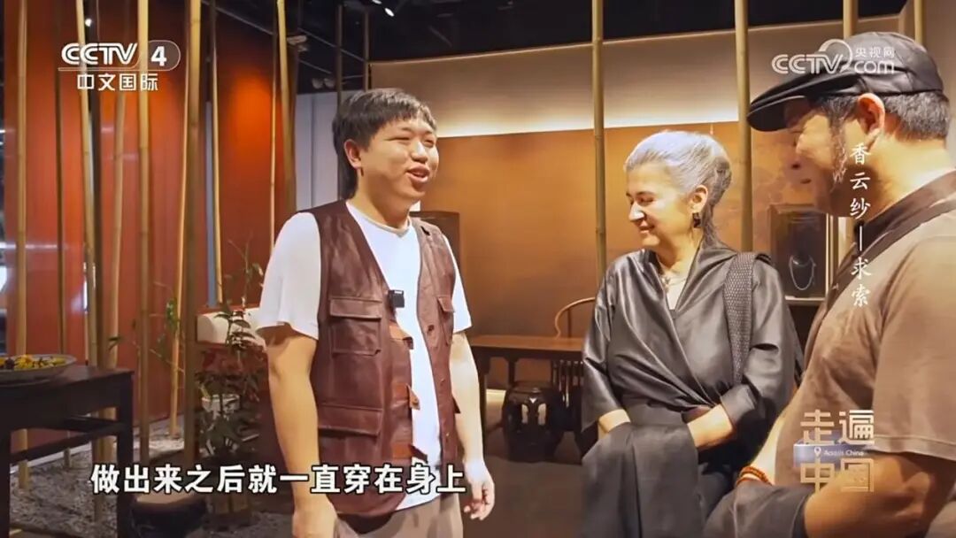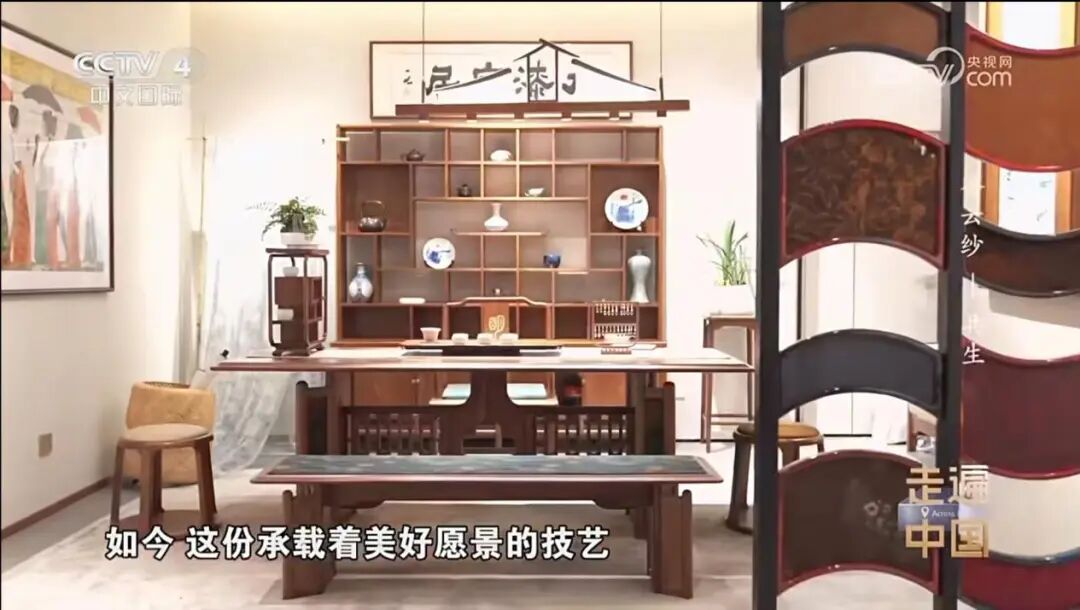 近日,央视中文国际频道《走遍中国》重磅推出三集专题系列片《香云纱》(《香云纱・天成》《香云纱・共生》《香云纱・求索》),我院教师梁耀明打造的两项设计空间作品——2022年落成的罗浮宫漫朴家具岭南大宅旗舰店、2024年完成的唐贤香云纱艺术馆改造,成为《香云纱・共生》《香云纱・求索》两集的核心取景地,梁耀明受邀出镜,其设计的「漫朴景致茶空间系列家具」(品牌茶家具销冠产品)亦同步呈现。此次亮相,充分彰显了我院教师扎实的专业设计能力与非遗创新实践成果,有力推动了岭南文化及国家级非遗香云纱的当代传播。