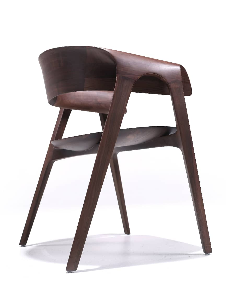 《望庐椅》的设计灵感源自设计师对中国非遗剪纸艺术的长期研究与深厚热爱,也暗含对传统民居文化的当代转译。作品最具突破性的创新,在于巧妙运用视觉差原理,将剪纸艺术的镂空、透视语言转化为家具结构语言:从正面观赏时,椅子呈现出如纸张对折般的极致轻薄感,线条灵动飘逸;从侧面观赏时,又展现出榫卯结构的厚重朴拙,支撑结构清晰可见,完美契合苏轼"横看成岭侧成峰,远近高低各不同"的传统诗学意境,让使用者在不同使用场景中获得独特的哲思体验。